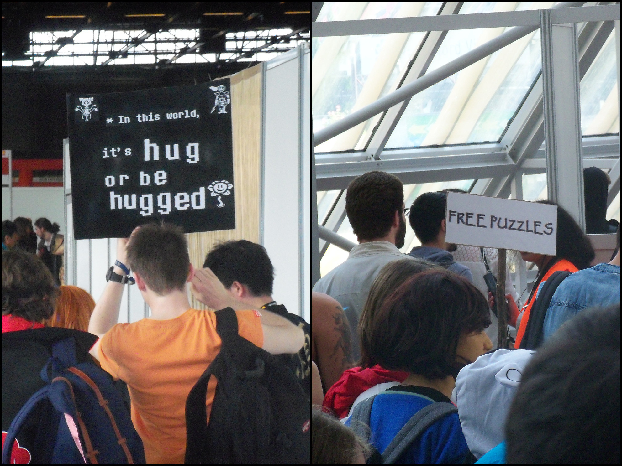 Par contre je suis très content d’avoir vu des gens qui ont choisis d’incarner des personnages d’Undertale :> Là encore, mandatory « je pouvais pas photographier à cause de la foule », mais j’ai quand même pu croiser plusieurs Undyne, Frisk, Toriel, Sans et même un MTT (au loin malheureusement) qui ont grave rechargé ma détermination.